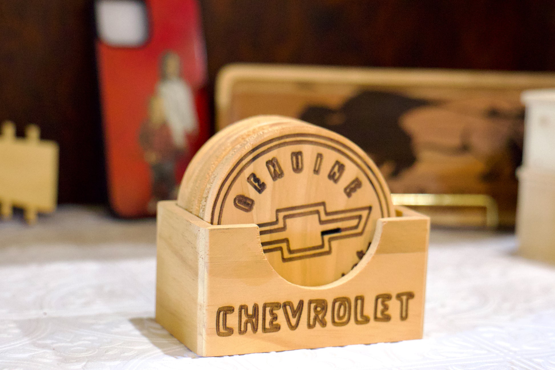 Crafted from premium wood, these Chevrolet wooden coasters feature precise laser engraving that highlights the iconic Chevrolet emblem with sharp detail. Designed to protect your surfaces from moisture and heat while adding a touch of automotive sophistication, these coasters are both durable and stylish. Ideal for Chevrolet enthusiasts seeking functional décor that reflects their passion with understated elegance.